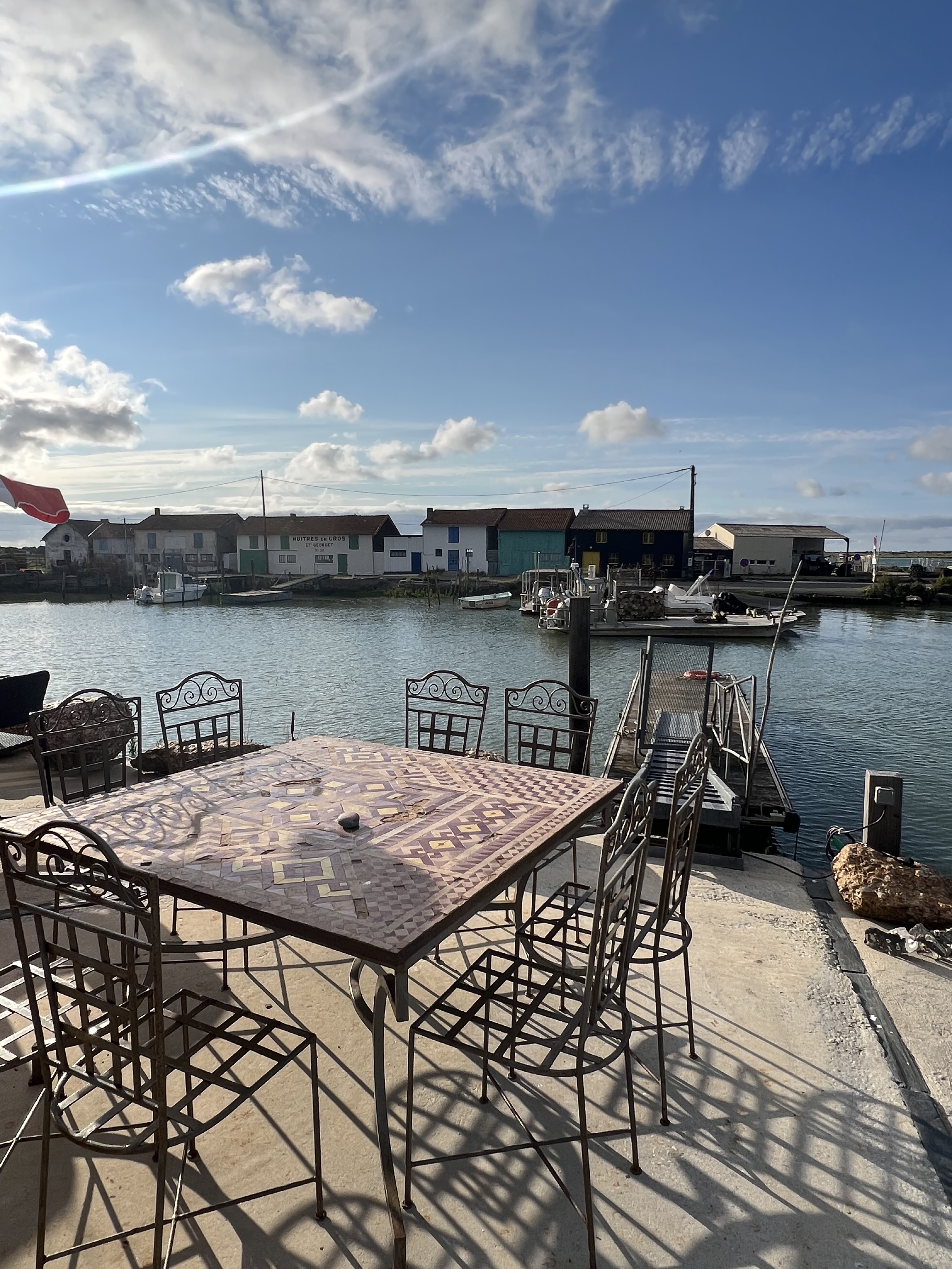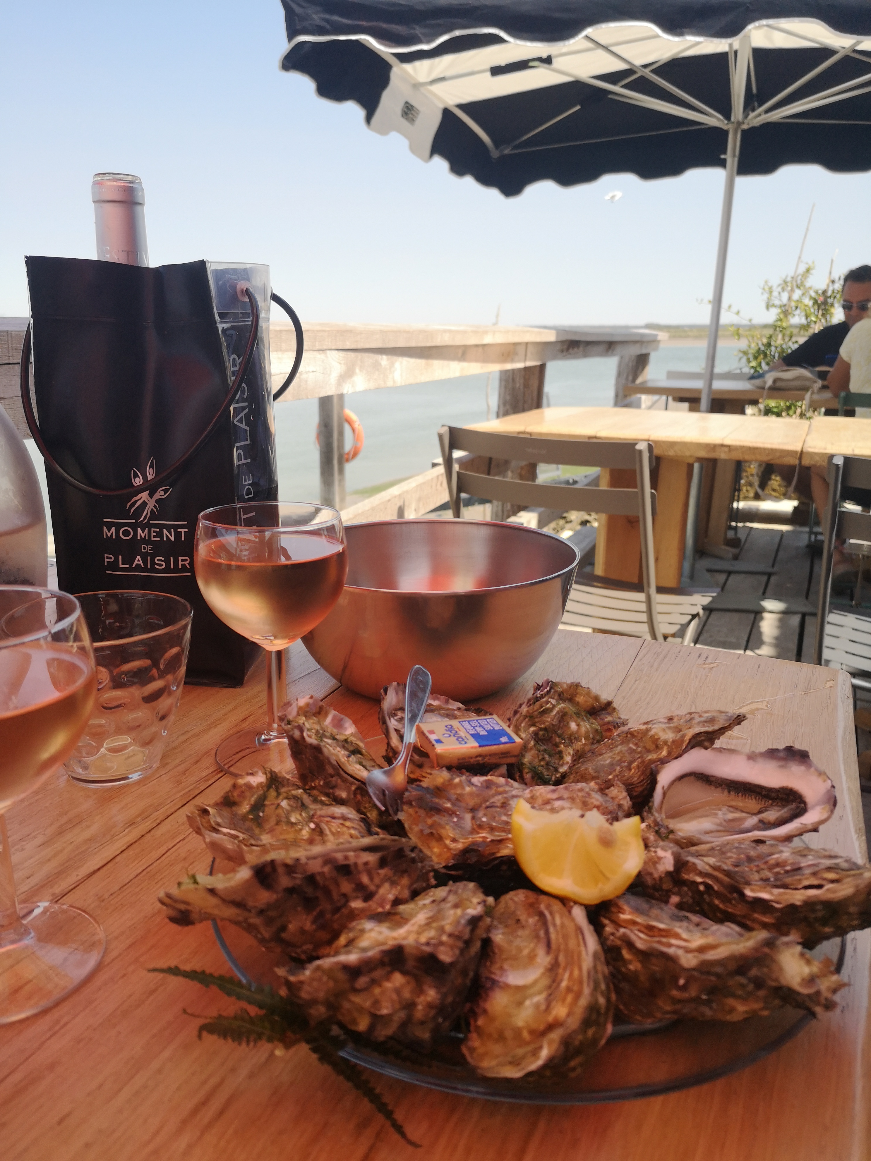 C'est vraiment très agréable de profiter des produits régionaux dans un tel cadre. Je recommande vivement pour partager de bons moments. Je reste sur une bonne note mais dommage que les tables ne soient pas débarrassées au fur et à mesure, les papiers peuvent voler dans la seudre. Peut être un petit rappel à faire au personnel qui sert.