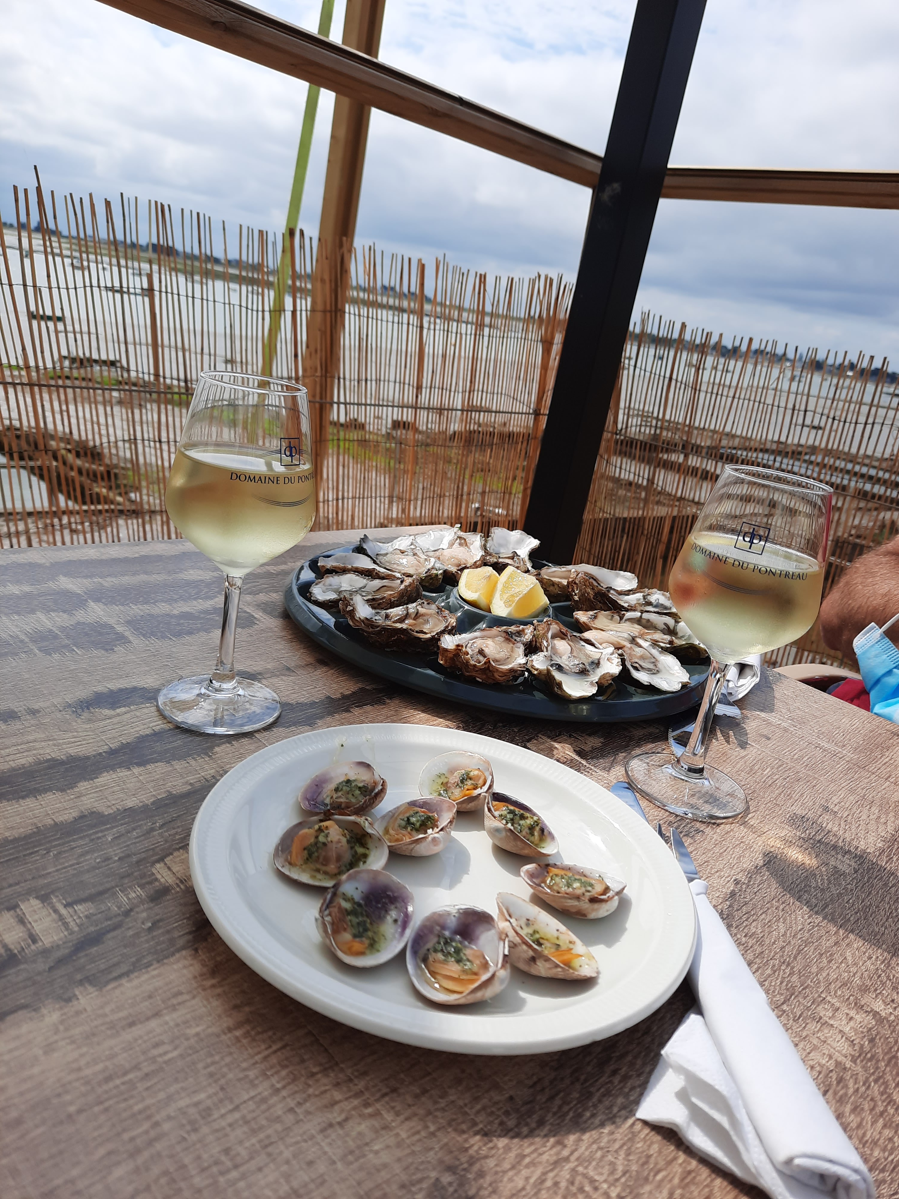 Belle terrasse pour déguster des huîtres avec vue sur l'estuaire. On s'est régalé la vue et les papilles.