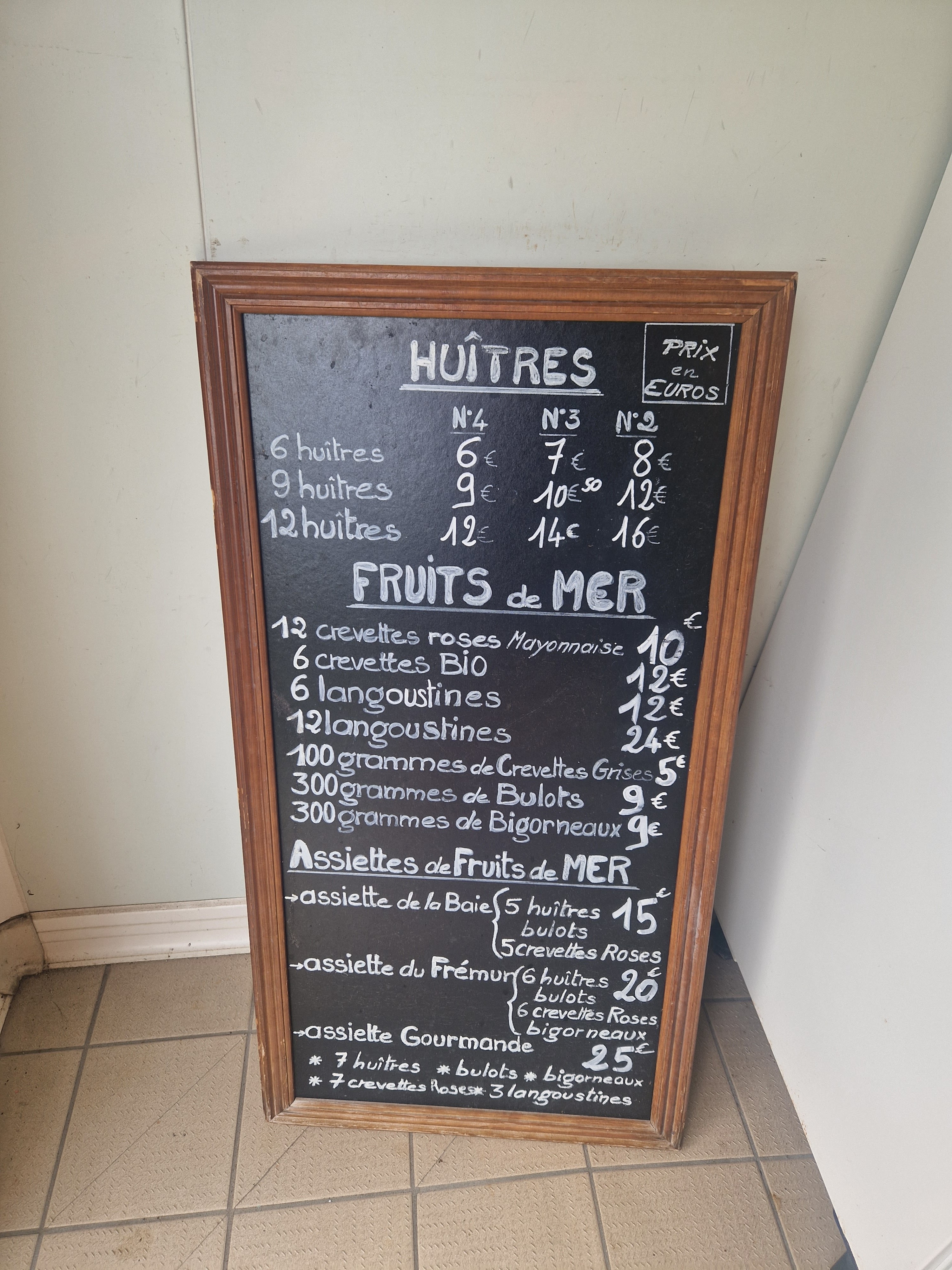 Produits frais , excellents , par contre 5 boulots dans des assiettes à 25 euros , un peu léger et un dé à coudre de mayonnaise pour l'assiette complète Accueil très froid voir désagréable . On peut penser à la limite qu'on les dérange . C'est la raison pour laquelle 3 étoiles seulement sur 5 sont justifiées ,
